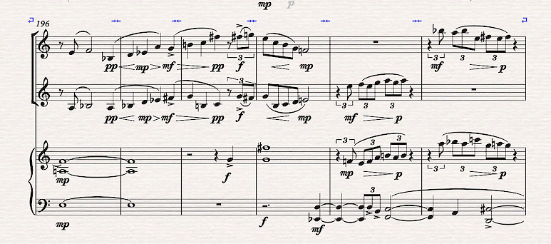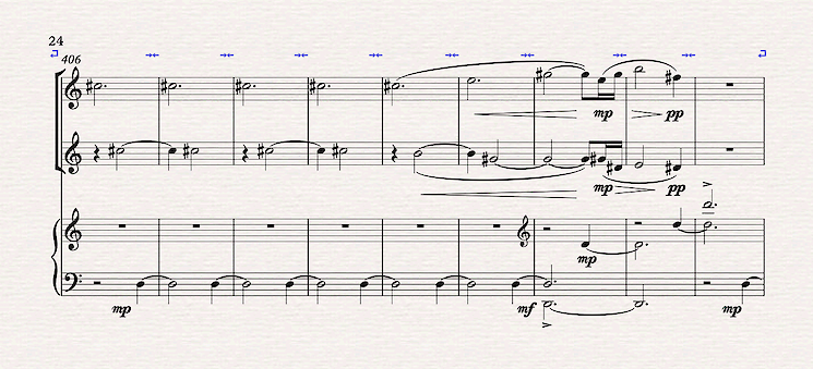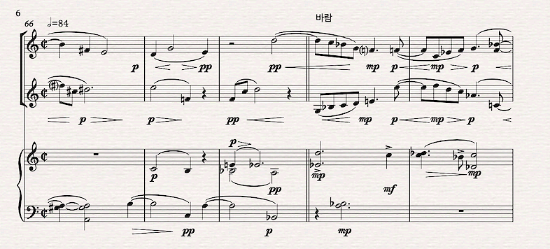 The poem by Mah Jonggi provided the image of wind and things shimmering in the wind -- rippling leaves and water. I was in Korea in 2010 (?) for Hyo Kang's Great Mountains Music Festival, where I got to know Korea & Koreans a bit, but I will not claim that I understand Korea. I'm grateful for the opportunity to think from the far away place, Korea, where the ideological battles that confuse and distract us in New York feel abstract, remote and possibly irrelevant. The project, as Veritas framed it, brought me to a planetary musical perspective. The postwar US was the naturual center of a planetary musical perspective, especially when great European composers took refuge in the US. Hindemith, Stravinsky, Schoenberg, Krenek and Wolpe, in various interesting ways, changed perspective when they crossed the Atlantic. The example that is most poignant here is when the supranational composer Igor Stravinsky championed Isang Yun.