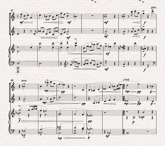 Measure 45 -- boiling down through Brahms op. 114-type process: to A, Bb, D, Eb