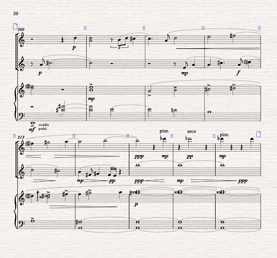 "1918" or "The Word of the Wind", for clarinet, violin & piano, was commissioned by Ebb & Flow Arts for Veritas Musicae, to be based on the poem "Word of the Wind" by Mah Jonggi . I am grateful to Robert Pollock & Shinhee Park for instigating this work. It's been developing for something like 10 years. It's taken on a life of its own, becoming something that that surprised me in many ways. I am grateful to the excellent musicians working with Veritas Musicae.